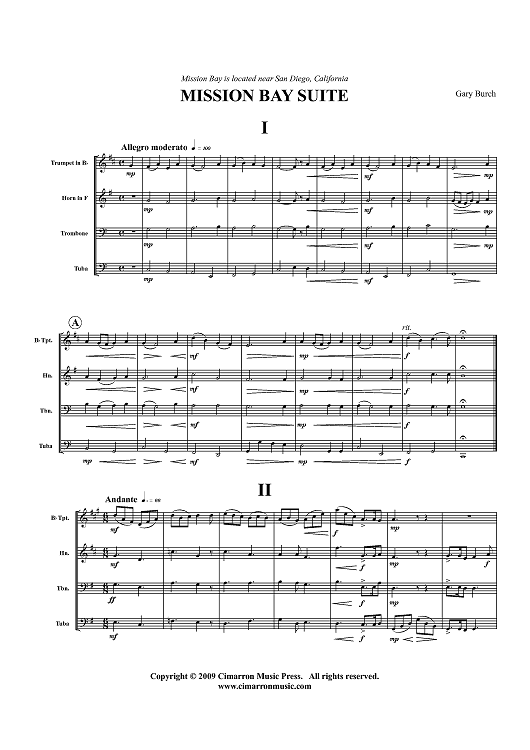 Digital Sheet Music for Mission Bay Suite - Score by Gary Burch scored for Brass Quartet; id:416960