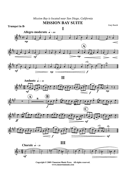 "Mission Bay Suite - Trumpet in Bb" Sheet Music by Gary Burch