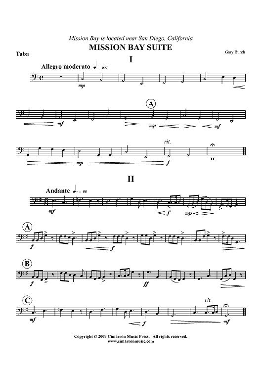 "Mission Bay Suite - Tuba" Sheet Music by Gary Burch