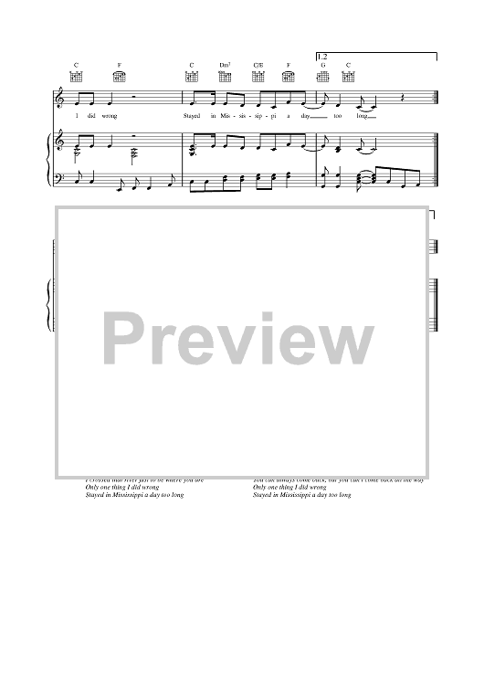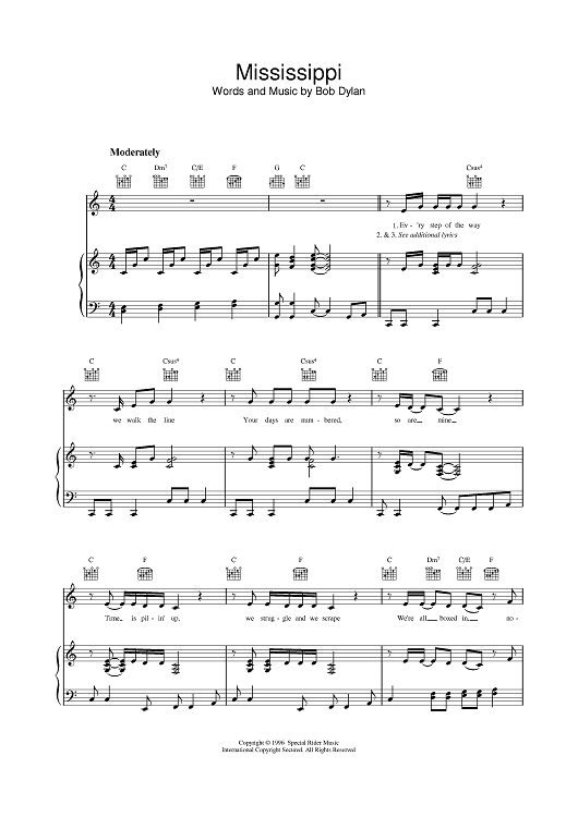 Digital Sheet Music for Mississippi by Bob Dylan scored for Piano/Vocal/Chords; id:377465