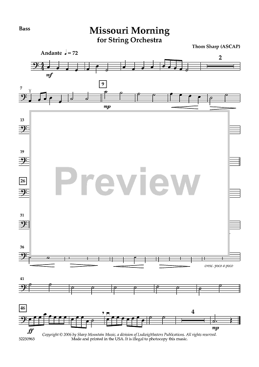 Digital Sheet Music for Missouri Morning for String Orchestra - Double Bass by , Thom Sharp scored for String Orchestra; id:460972