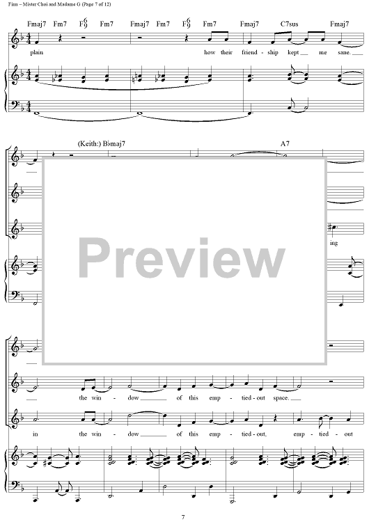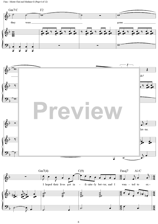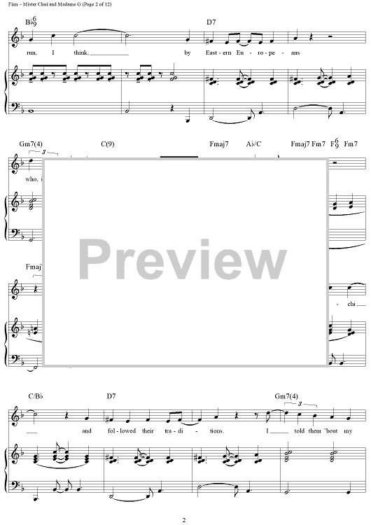 Digital Sheet Music for Mister Choi and Madame G by William Finn scored for Piano/Vocal/Chords; id:360033