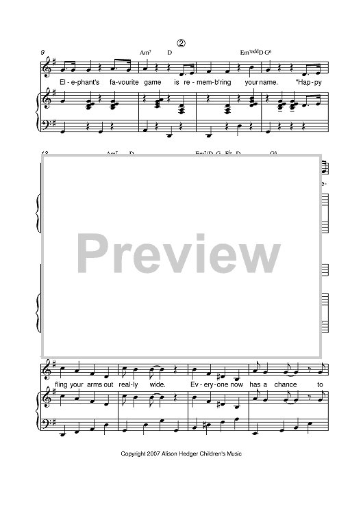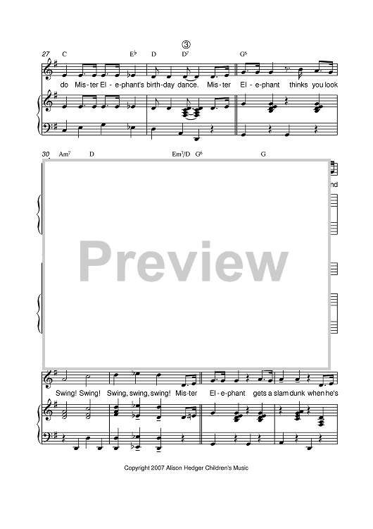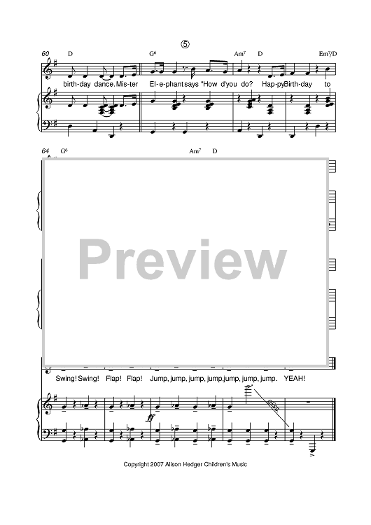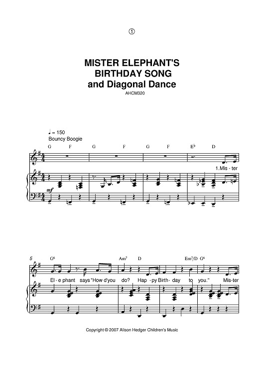 Digital Sheet Music for Mister Elephant's Birthday Song And Diagonal Dance by Alison Hedger scored for Piano/Vocal/Chords; id:401310