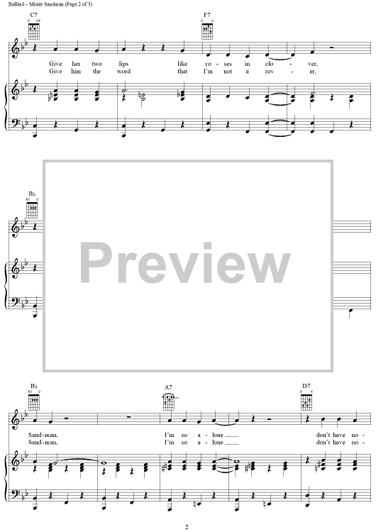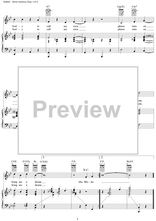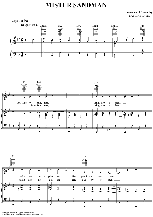 Digital Sheet Music for Mister Sandman by Pat Ballard scored for Piano/Vocal/Chords; id:409737