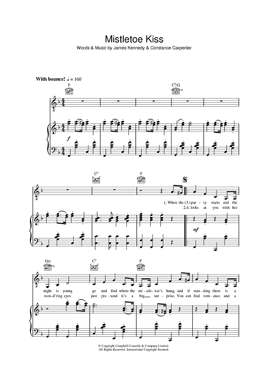 Digital Sheet Music for Mistletoe Kiss by Margaret Whiting, Constance Carpenter, James Kennedy scored for Piano/Vocal/Chords; id:392778