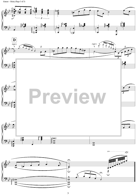 Digital Sheet Music for Misty by Erroll Garner scored for Piano Solo; id:318377