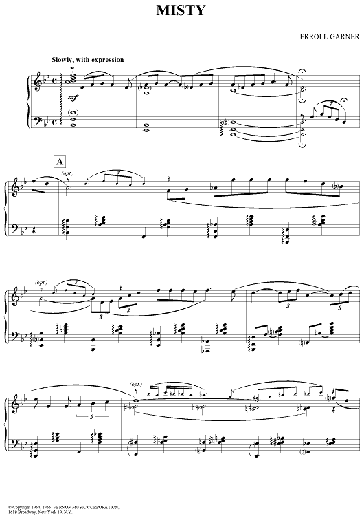 "Misty" Sheet Music by Erroll Garner