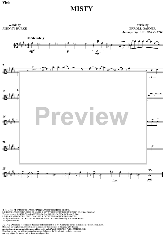 "Misty - Viola" Sheet Music by Erroll Garner