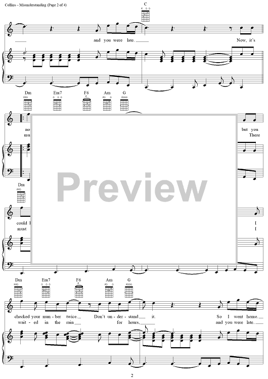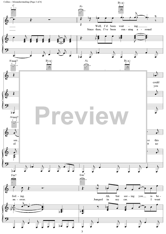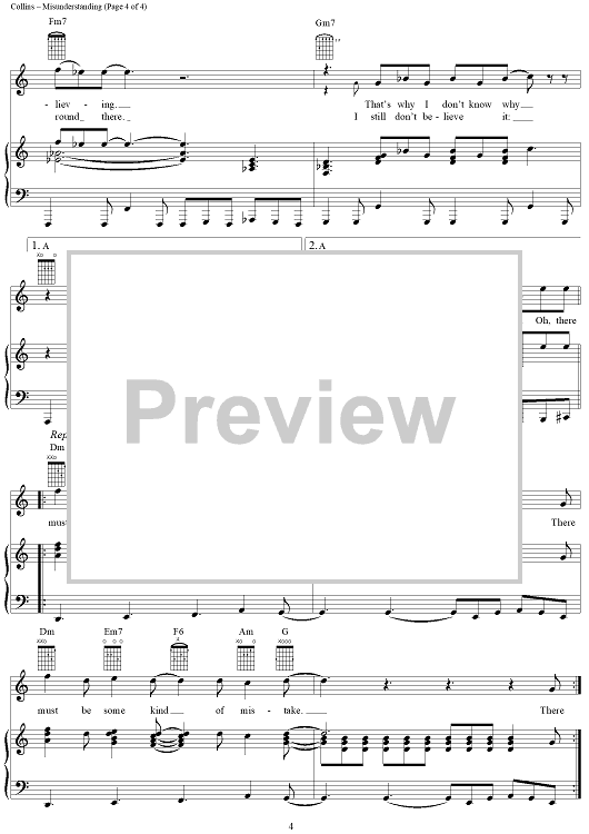 Digital Sheet Music for Misunderstanding by Genesis, Phil Collins scored for Piano/Vocal/Chords; id:272382