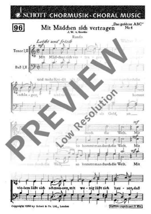 Digital Sheet Music for Mit Mädchen sich vertragen - Choral Score by Walter Rein scored for Men's Choir; id:479775