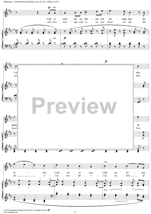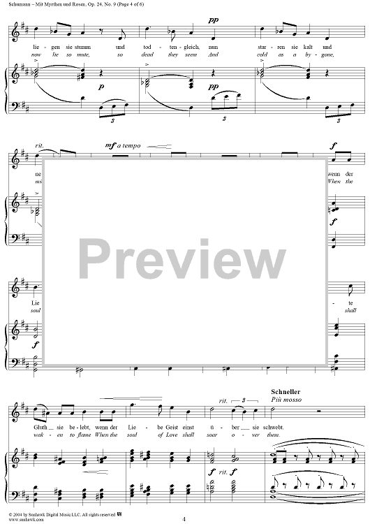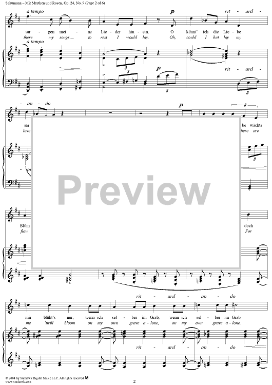 Digital Sheet Music for "Mit Myrthen und Rosen", Op. 24, No. 9 by Robert Schumann, Heinrich Heine scored for Voice/Piano; id:296415