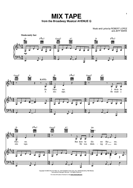Digital Sheet Music for Mix Tape by Robert Lopez, Jeff Marx scored for Piano/Vocal/Chords; id:374794