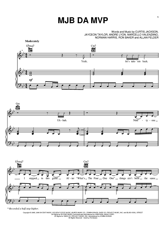 Digital Sheet Music for MJB Da MVP by Mary J. Blige, Norman Harris, 50 Cent, Ron Baker, Allan Felder, Andre Lyon, The Game, Marcello Valenzano scored for Piano/Vocal/Chords; id:395053