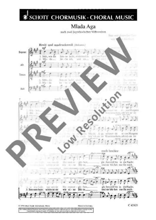 Digital Sheet Music for Mlada Aga - Choral Score by Walter Klefisch scored for Mixed Choir (satb); id:471710