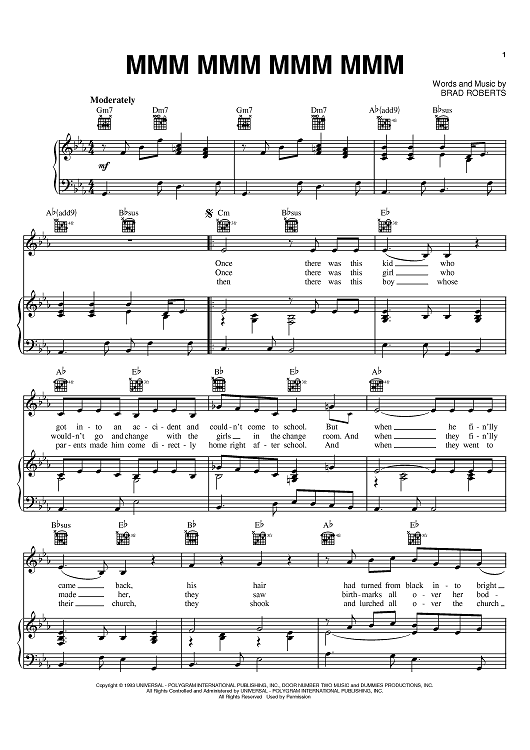 Digital Sheet Music for Mmm Mmm Mmm Mmm by Crash Test Dummies, Brad Roberts scored for Piano/Vocal/Chords; id:392511