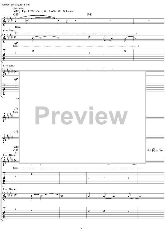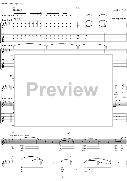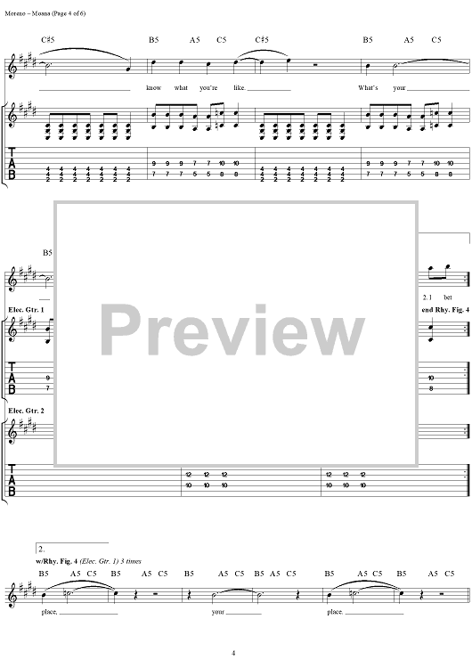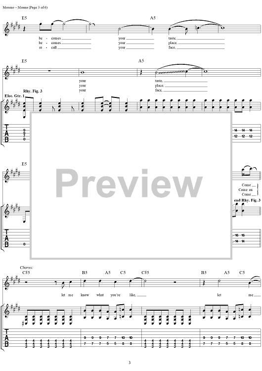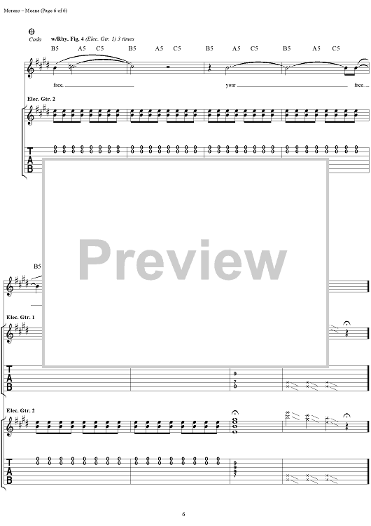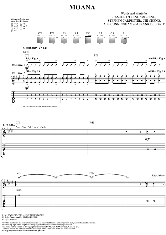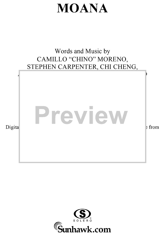 Digital Sheet Music for Moana by Deftones, Chino Moreno, Chi Cheng, Abe Cunningham, Frank Delgato scored for Guitar Tab/Vocal; id:303041