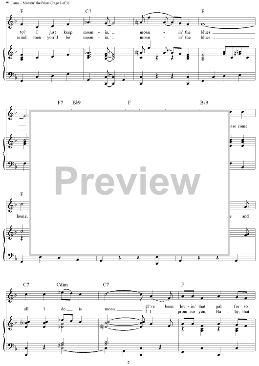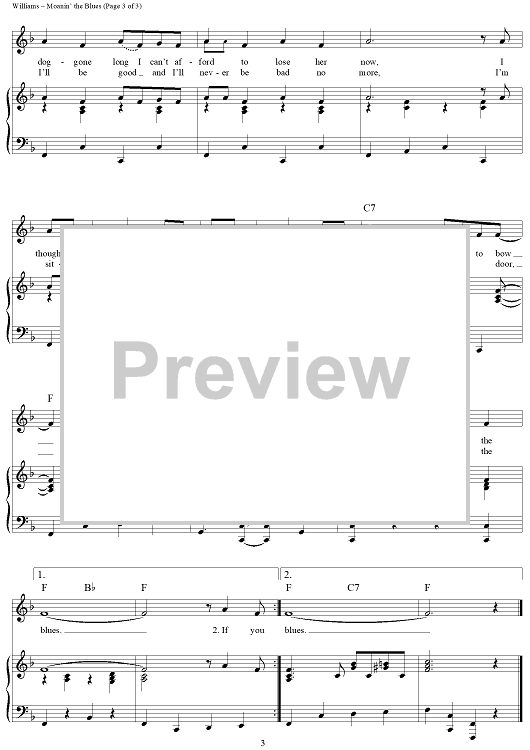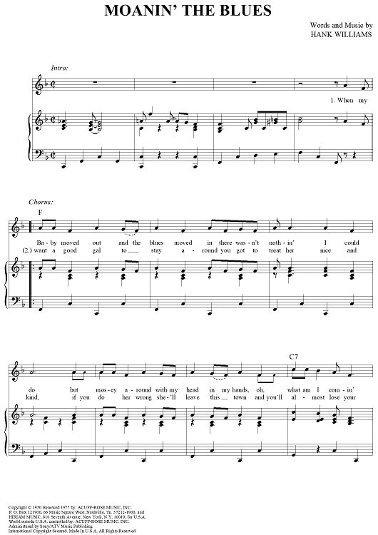 Digital Sheet Music for Moanin' the Blues by Hank Williams, Three Hanks scored for Piano/Vocal/Chords; id:361894