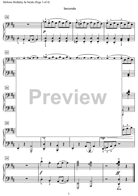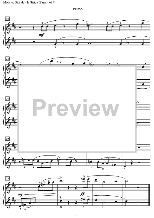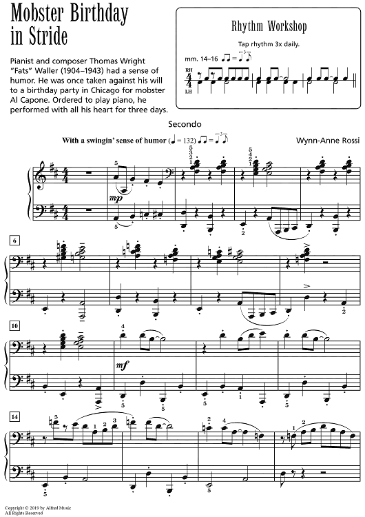 Digital Sheet Music for Mobster Birthday in Stride by Wynn-Anne Rossi scored for 1 Piano, 4 Hands; id:469650