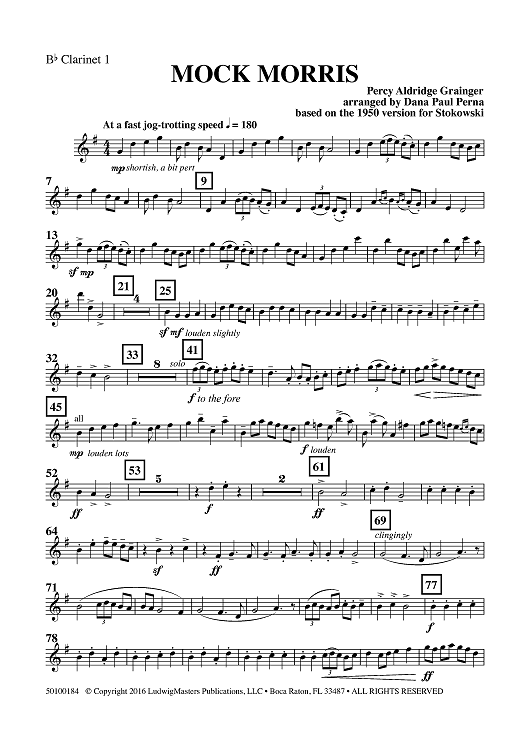 "Mock Morris - Clarinet 1 in Bb" Sheet Music by Percy Grainger