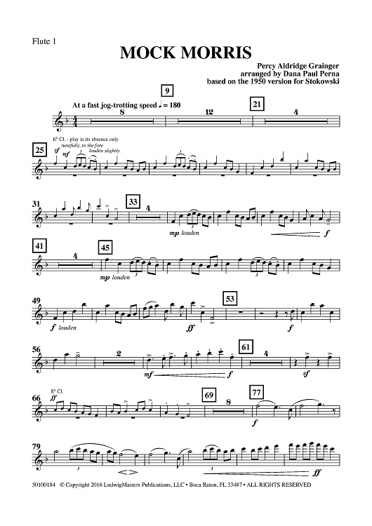 Digital Sheet Music for Mock Morris - Flute 1 by Percy Grainger scored for Concert Band; id:461698