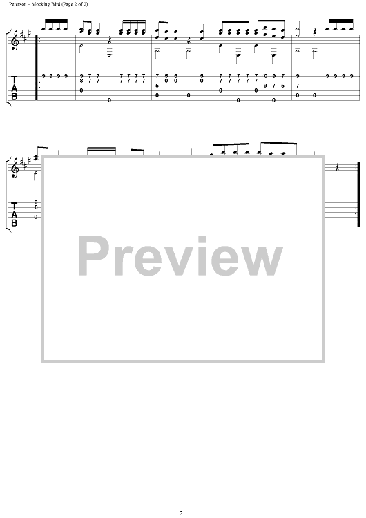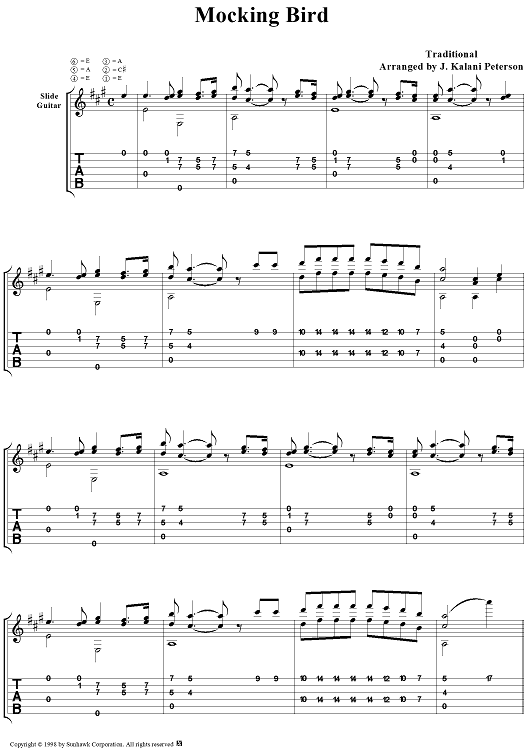 Digital Sheet Music for Mocking Bird by J. Kalani Peterson, Traditional scored for Guitar Tab; id:95700