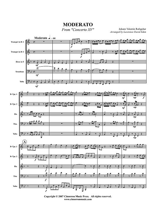 Digital Sheet Music for Moderato from Concerto XV - Score by Lawrence David Eden, Johann Valentin Rathgeber scored for Brass Quintet; id:413637