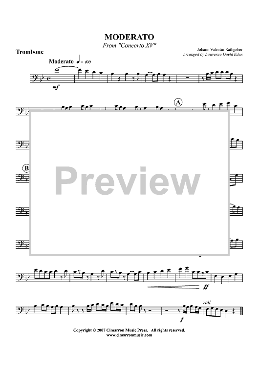 "Moderato from Concerto XV - Trombone" Sheet Music by Johann Valentin Rathgeber