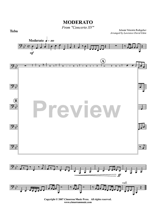 "Moderato from Concerto XV - Tuba" Sheet Music by Johann Valentin Rathgeber