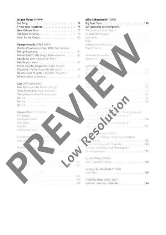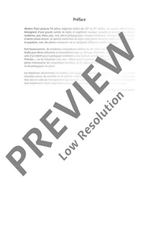 This book Modern Piano contains 90 easy original pieces from the 20th and 21st centuries. The pieces selected display a great variety of styles including New Music, neoclassicism, modern dances, jazz, blues, pop, rock, musical studies, meditative music, New Age music and more besides: a colourful range of different styles, sometimes blurring the distinction between classical and popular music in ‘crossover’ pieces that bridge the gap between different musical worlds.The little pieces selected invite us to go on a musical journey of discovery, introducing new experiences using modern sounds and rhythms. All these pieces are suitable for tuition purposes, auditions, examinations and school music competitions – or just as stimulating repertoire for pianists interested in music.