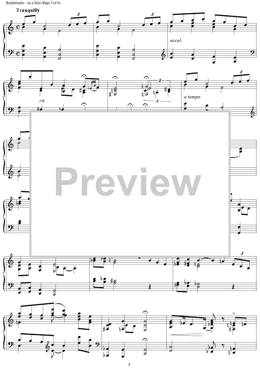 Digital Sheet Music for Modern Piano Suite, No. 1: In a Mist by Bix Beiderbecke scored for Piano Solo; id:321580