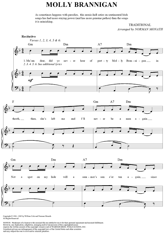 Digital Sheet Music for Molly Brannigan by Norman Monath, Traditional scored for Piano/Vocal/Chords; id:261544