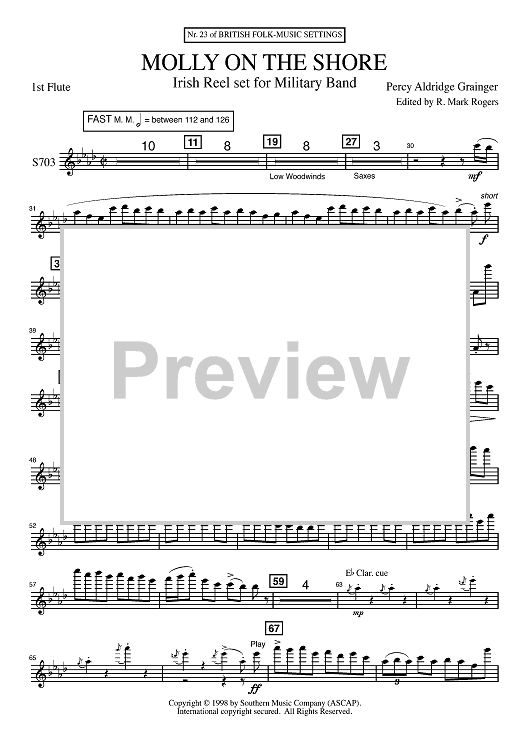 Digital Sheet Music for Molly on the Shore - Flute 1 by Percy Grainger, R. Mark Rogers scored for Concert Band; id:503065