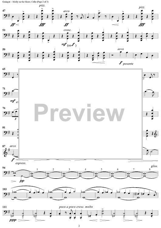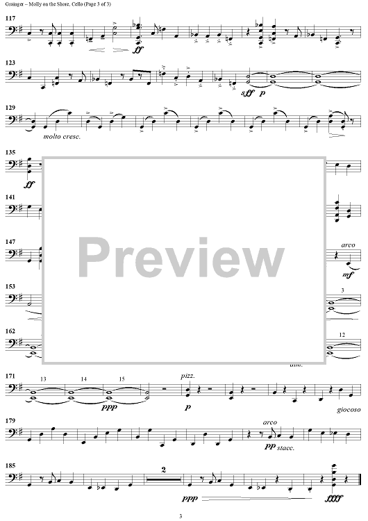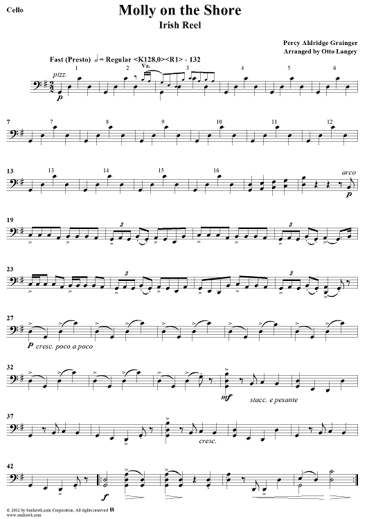 "Molly on the Shore (Irish Reel) - Cello" Sheet Music by Percy Grainger