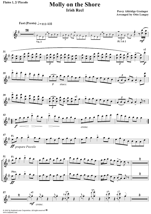"Molly on the Shore (Irish Reel) - Flutes/Piccolo" Sheet Music by Percy Grainger