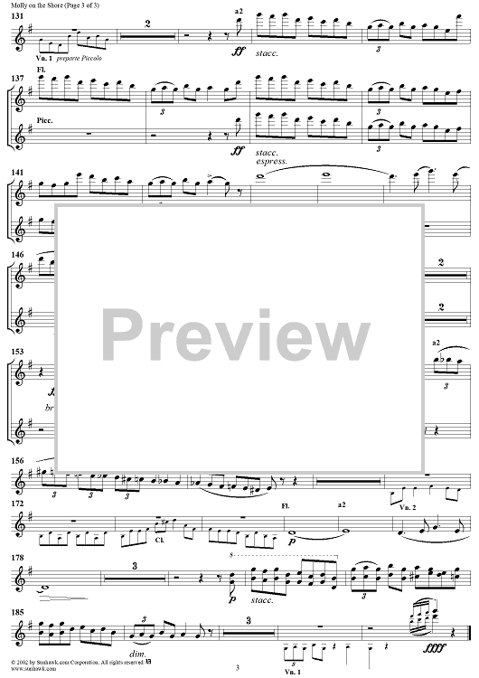 Digital Sheet Music for Molly on the Shore (Irish Reel) - Flutes/Piccolo by Otto Langey, Percy Grainger scored for Orchestra; id:290697