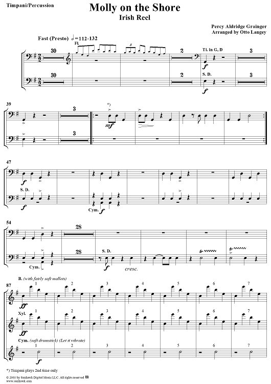 Digital Sheet Music for Molly on the Shore (Irish Reel) - Timpani/Percussion by Otto Langey, Percy Grainger scored for Orchestra; id:290702