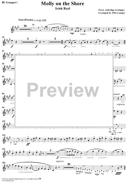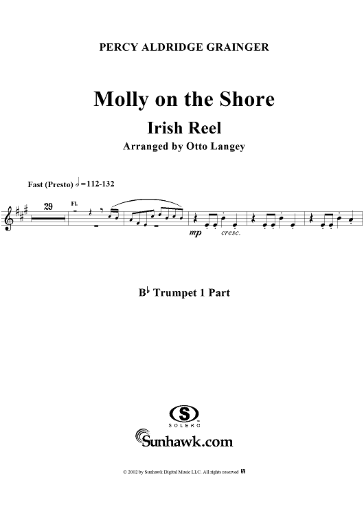 Digital Sheet Music for Molly on the Shore (Irish Reel) - Trumpet 1 by Otto Langey, Percy Grainger scored for Orchestra; id:290704