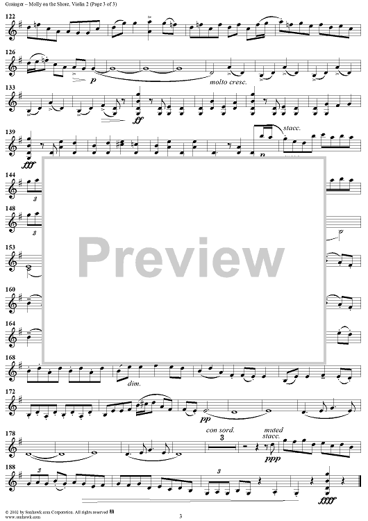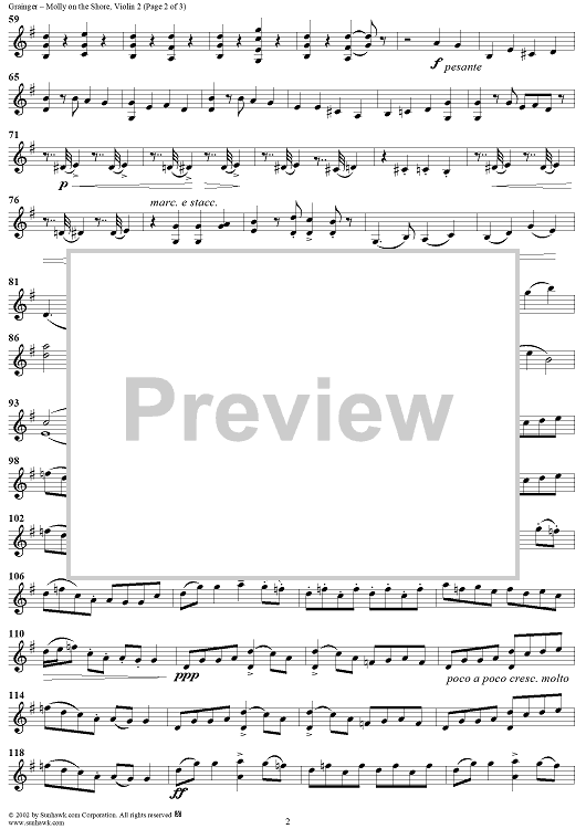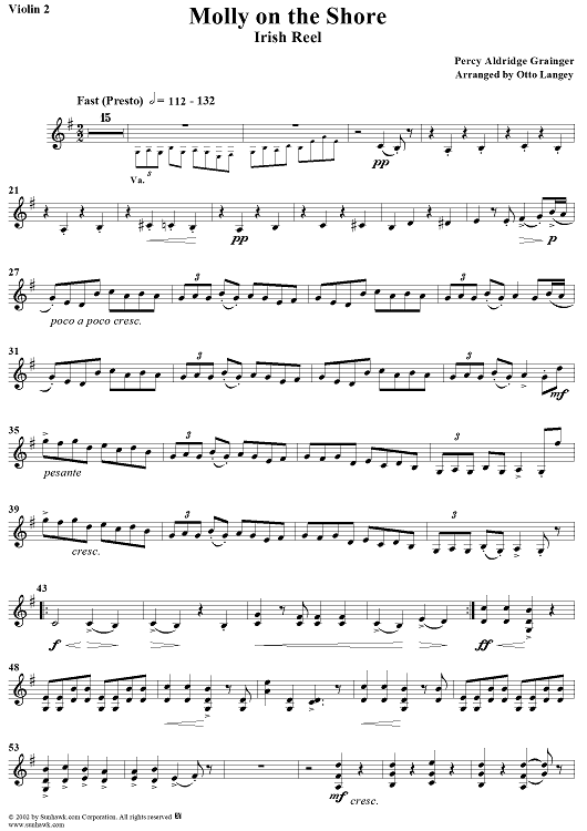 "Molly on the Shore (Irish Reel) - Violin 2" Sheet Music by Percy Grainger