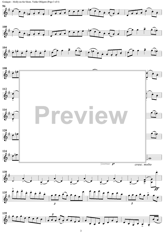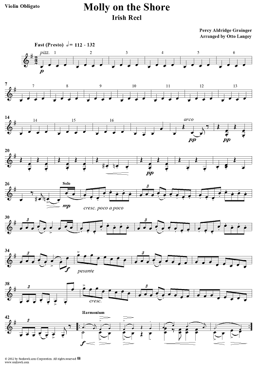 "Molly on the Shore (Irish Reel) - Violin Obligato" Sheet Music by Percy Grainger