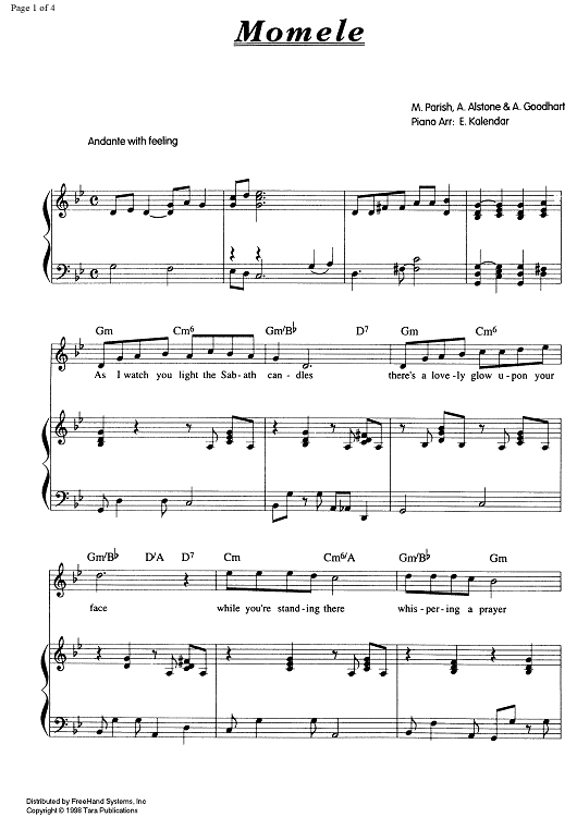 Digital Sheet Music for Momele by , A. Alstone, A. Goodhart, Edward Kalendar, M. Parish scored for Voice/Piano; id:343864
