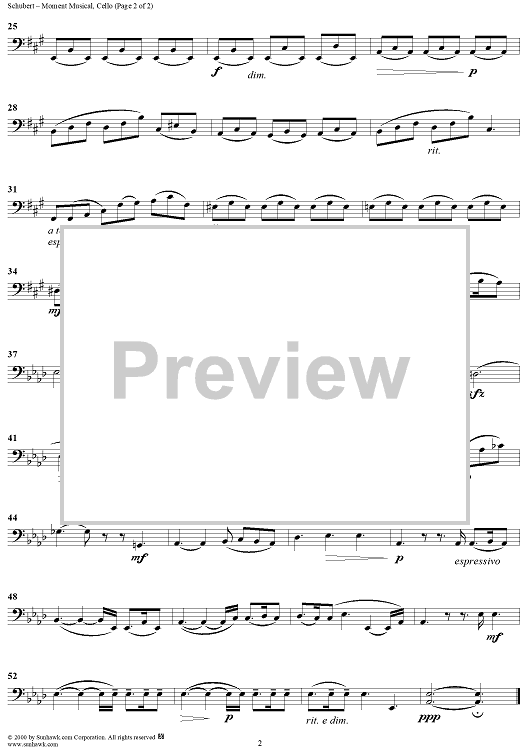 "Moment Musical - Cello" Sheet Music by Franz Schubert