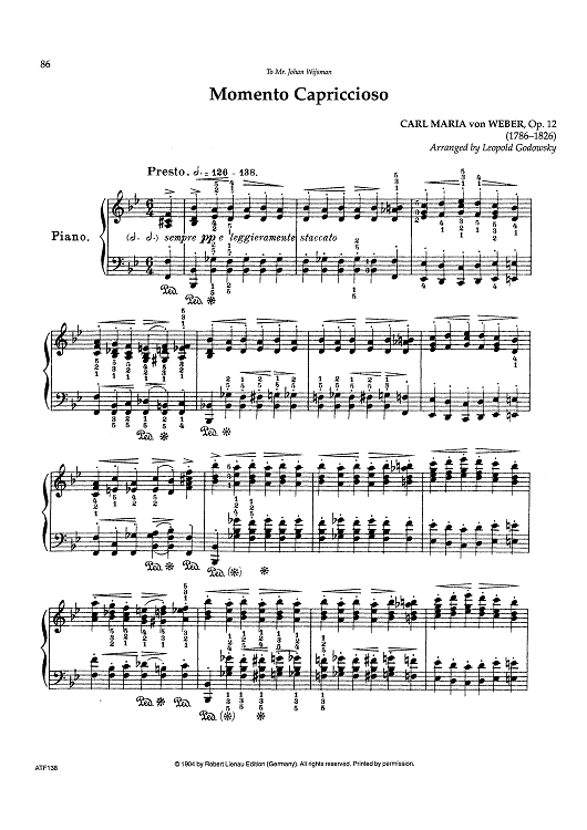 Digital Sheet Music for Momento Capriccioso, Op. 12 by Leopold Godowsky, Carl Maria Von Weber scored for Piano Solo; id:439463