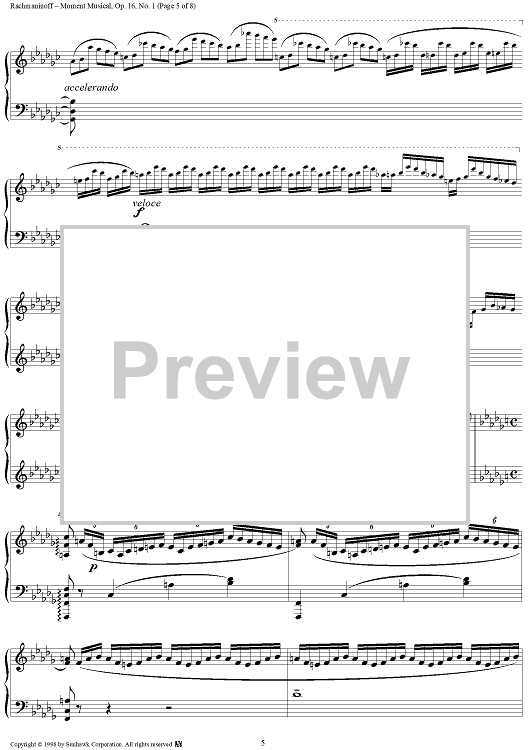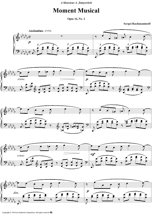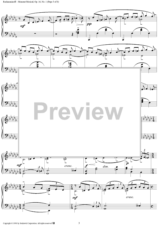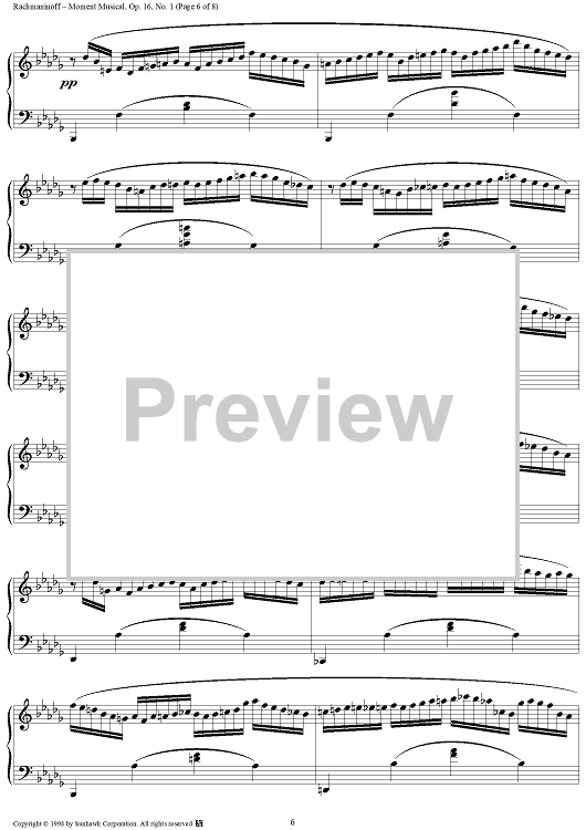 Digital Sheet Music for Moments musicaux, No. 1 in B-flat Minor, Op. 16 by Sergei Rachmaninoff scored for Piano Solo; id:95704