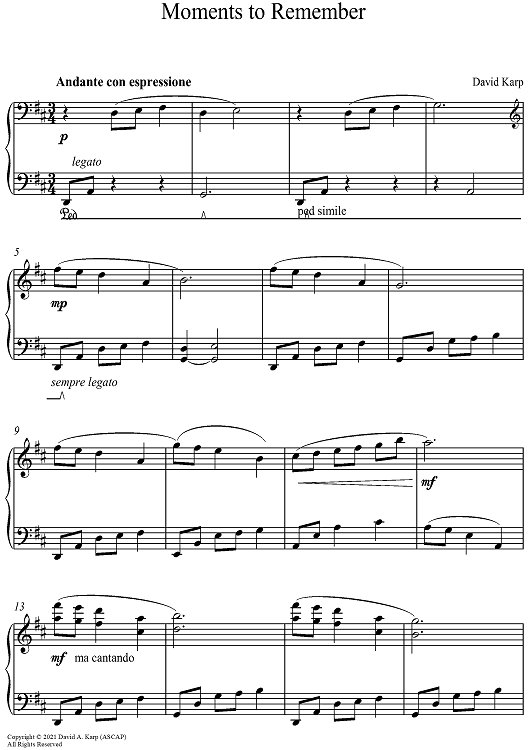 Digital Sheet Music for Moments to Remember by David Karp scored for Piano Solo; id:497181