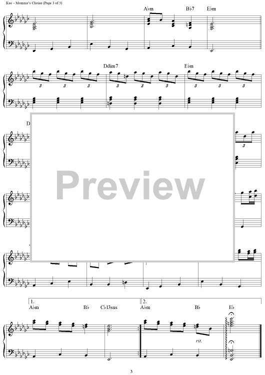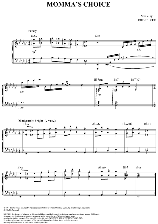 Digital Sheet Music for Momma's Choice by John P. Kee scored for Piano Solo; id:311181