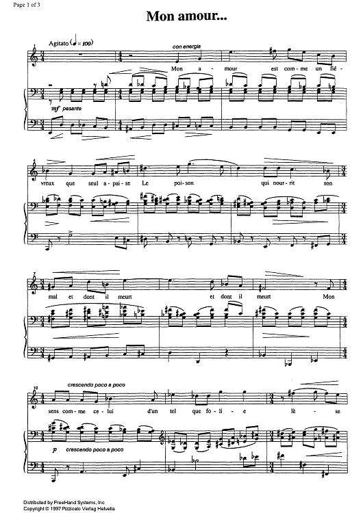 Digital Sheet Music for Mon amour by , Marco Sofianopulo scored for Soprano/Piano; id:334372