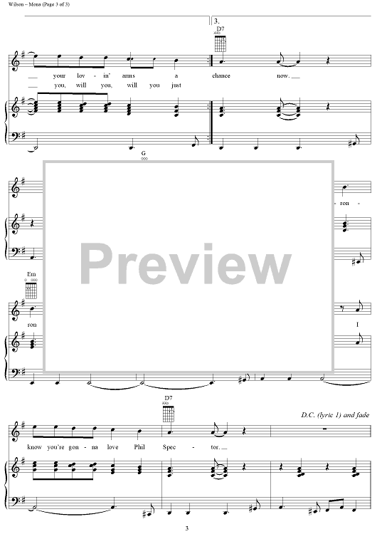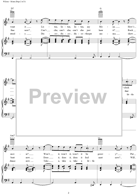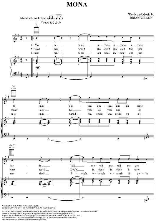 Digital Sheet Music for Mona by Brian Wilson, The Beach Boys scored for Piano/Vocal/Chords; id:154959