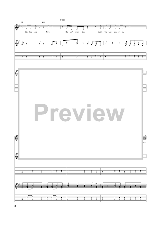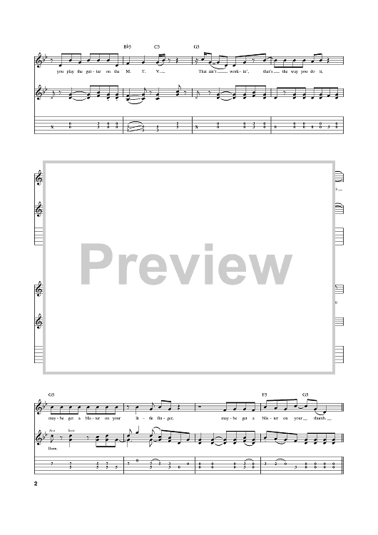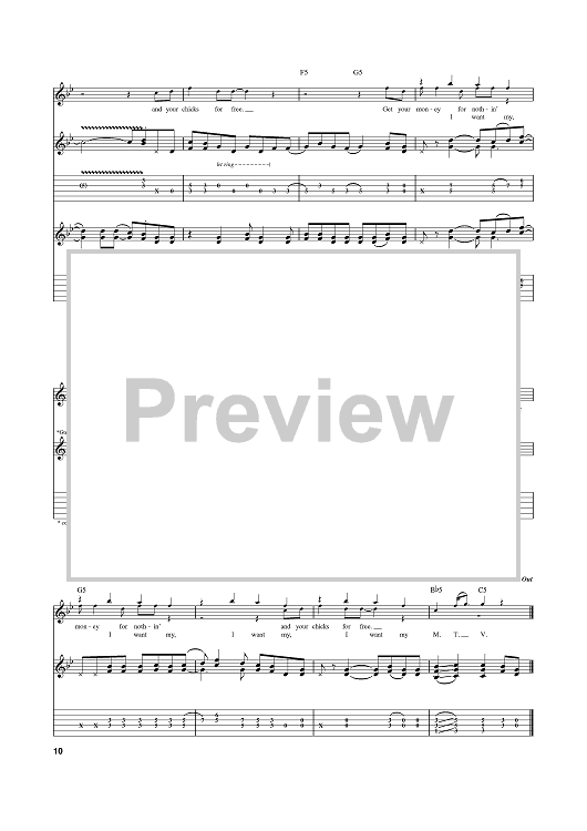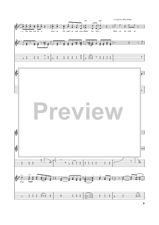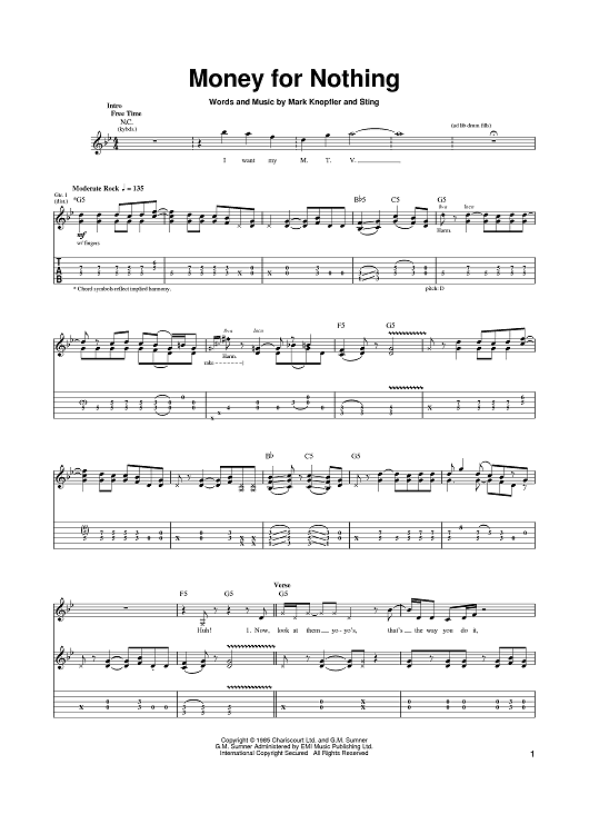 Digital Sheet Music for Money For Nothing by Sting, Mark Knopfler, Dire Straits scored for Guitar Tab; id:367893