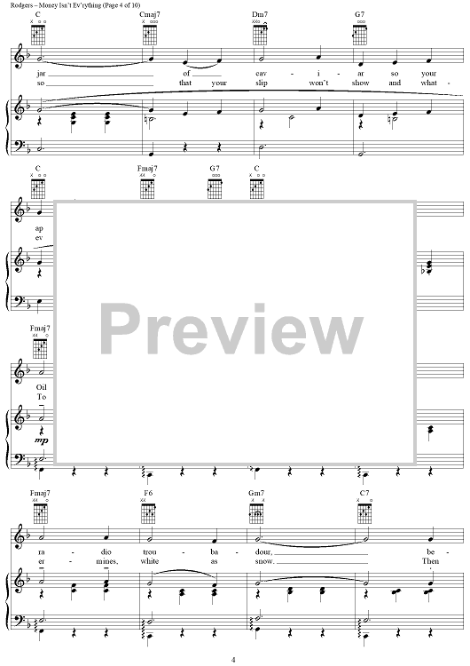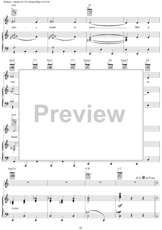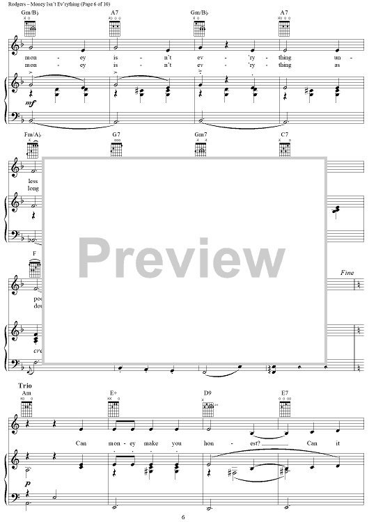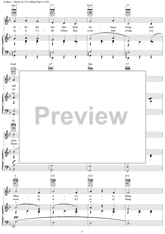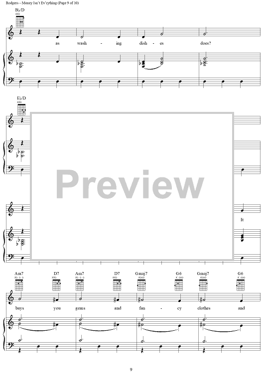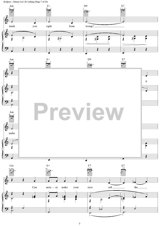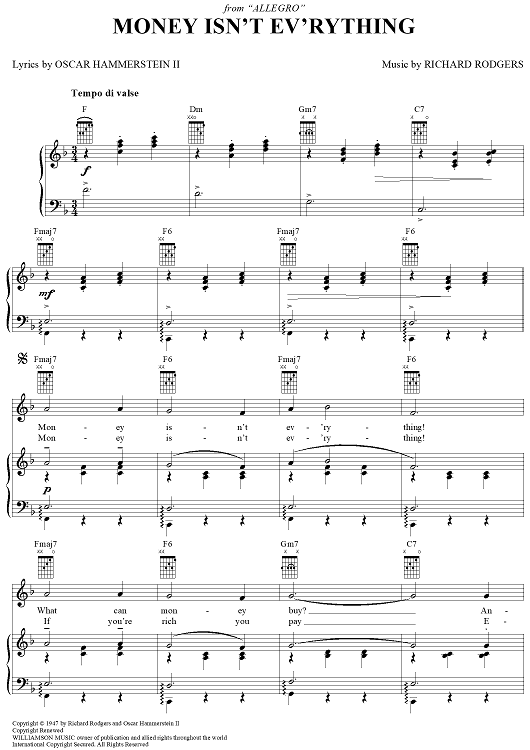Digital Sheet Music for Money Isn't Ev'rything by Richard Rodgers, Oscar Hammerstein II scored for Piano/Vocal/Chords; id:367078