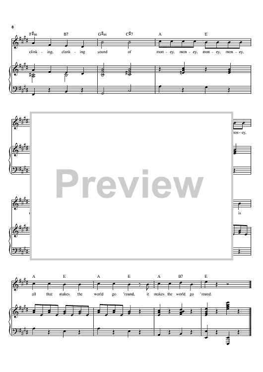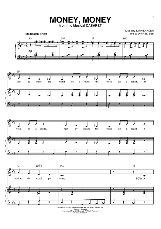 Digital Sheet Music for Money, Money by John Kander, Fred Ebb scored for Piano/Vocal/Chords; id:384788
